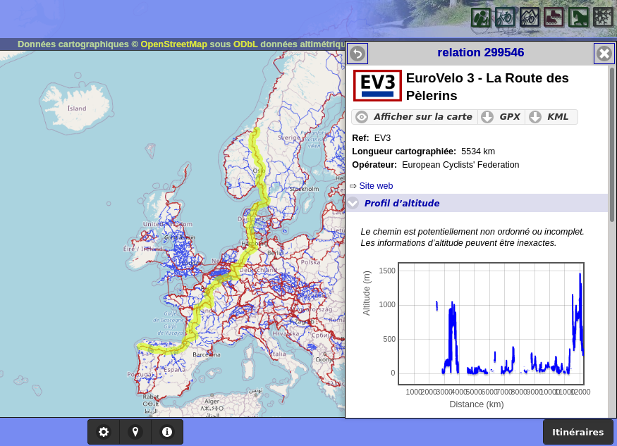 Capture d’écran de la Route des Pélerins EV3 :