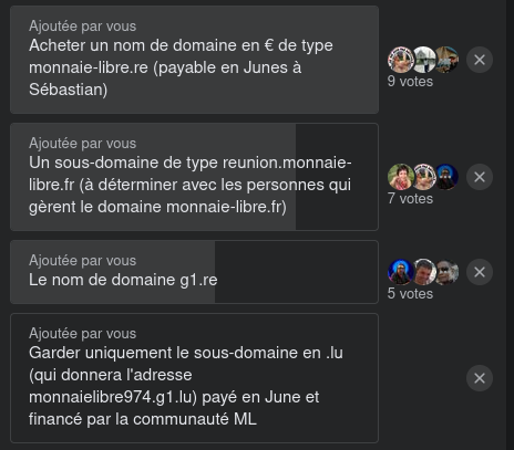 - Garder uniquement le sous-domaine en .lu (qui donnera l’url monnaielibre974.g1.lu) payé en Junes et financé par la communauté ML